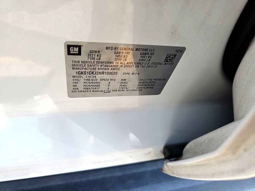 10 Speakers, 17" Disc/Disc VAC Power Brakes, 3rd row seats: split-bench, 5 Auxiliary 12-volt Power Outlets, Adjustable pedals, AM/FM radio: SiriusXM, Apple CarPlay/Android Auto, Automatic temperature control, Black Assist Steps w/Chrome Strip, Bose Centerpoint Premium 10-Speaker Surround Sound, CD Player, CD player, Enhanced Driver Alert Package, Exterior Parking Camera Rear, Forward Collision Alert Sensor Indicator, Front Bucket Seats, Front Center Armrest, Front dual zone A/C, Full-Feature Reclining Bucket Seats, Hands Free Power Liftgate, Heated & Ventilated Driver & Front Passenger Seats, Heated door mirrors, Heated front seats, Heated Leather-Wrapped Steering Wheel, Heated rear seats, Inside Rear-View Auto-Dimming Mirror, Integrated Trailer Brake Controller, Intellibeam Automatic High Beam On/Off Headlamps, Lane Keep Assist, Low Speed Forward Automatic Braking, Low tire pressure warning, Memory Package, Memory seat, Navigation System, NavTraffic, OnStar Basic Plan For 5 Years, OnStar w/4G LTE, Open Road Package, Passive Entry System, Pedal memory, Perforated Leather-Appointed Seat Trim, Power Liftgate, Power Release Second Row Bucket Seats, Power Tilt & Telescopic Steering Column, Power Tilt-Sliding Sunroof w/Express-Open/Close, Power-Adjustable Pedals For Accelerator & Brake, Preferred Equipment Group 5SA, Premium audio system: IntelliLink, Push Button Keyless Start, Radio: AM/FM/SiriusXM w/Navigation, Rear air conditioning, Rear Cross-Traffic Alert, Rear Seat Blu-Ray/DVD Entertainment System, Rear window defroster, Remote Keyless Entry, Side Blind Zone Alert w/Lane Change Alert, SiriusXM Satellite Radio, Steering wheel memory, Steering wheel mounted audio controls, Universal Home Remote, Ventilated front seats, Wireless Charging.