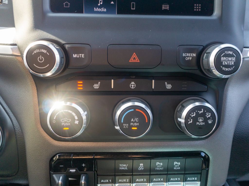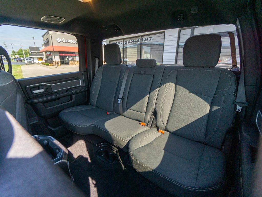 2 Way Rear Headrest Seat, 2nd Row In Floor Storage Bins, 4 Way Front Headrests, 4G LTE Wi-Fi Hot Spot, 8.4" Touchscreen Display, 9 Alpine Speakers w/Subwoofer, Active Noise Control System, AM/FM radio: SiriusXM, Apple CarPlay, Apple CarPlay/Android Auto, Auto-Dimming Rear-View Mirror, Black Exterior Truck Badging, Black Headlamp Bezels, Black Interior Accents, Black Ram Head Tailgate Badge, Black Tail Lamp Bezels, Black Wheel Center Hub, Bluetooth Handsfree Phone & Audio, Body Color Door Handles, Body Color Grille Surround, Bucket Seats, Connectivity - US/Canada, Digital Rearview Mirror, Dual Glove Boxes, Foam Bottle Insert (Door Trim Panel), Folding Flat Load Floor Storage, Footwell Courtesy Lamp, Front Fog Lamps, Front Performance Tuned Shock Absorbers, Front Seat Back Map Pockets, Full Length Upgraded Floor Console, Global Telematics Box Module (TBM), Gloss Black Grille Nostrils/Mic, Glove Box Lamp, Google Android Auto, GPS Antenna Input, Heated door mirrors, Heated Front Seats, Heated Seats & Wheel Group, Heated Steering Wheel, Hill Descent Control, Integrated Center Stack Radio, Integrated Voice Command w/Bluetooth, Leather Wrapped Steering Wheel, Level A Equipment Group, Locking Lower Glove Box, Lone Star Badge, Low tire pressure warning, Manual Adjust 4-Way Front Passenger Seat, Night Edition, Off Road Decal, Off Road Package, Painted Front Bumper, Painted Rear Bumper, ParkSense Front/Rear Park Assist System, ParkView Rear Back-Up Camera, Power 2-Way Driver Lumbar Adjust, Power Adjust 8-Way Driver Seat, Power Adjustable Pedals, Premium Cloth Bucket Seats (DISC), Quick Order Package 2GY Lone Star (Regional), Radio: Uconnect 5 W w/8.4" Display, Rear 60/40 Folding Seat, Rear Dome w/On/Off Switch Lamp, Rear Performance Tuned Shock Absorbers, Rear Window Defroster, Remote keyless entry, Selectable Tire Fill Alert, SiriusXM Satellite Radio, Steering Wheel Mounted Audio Controls, Sun Visors w/Illuminated Vanity Mirrors, Tow Hooks, Tow-Mode Camera (Wired) (DISC), Tow-Mode Digital Rearview Mirror Package (DISC), Universal Garage Door Opener, Vendor Painted Cargo Box, Vendor Painted Cargo Box Tracking, Wheels: 20" x 8.0" Black Painted Aluminum.