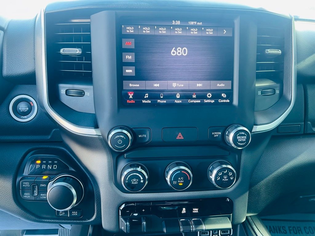 1 Owner, 3 Rear Seat Head Restraints, 4 Adjustable Cargo Tie-Down Hooks, 4 Way Front Headrests, 9 Amplified Speakers w/Subwoofer, AM/FM radio, Auto-Dimming Exterior Driver Mirror, Auto-Dimming Rear-View Mirror, Bed Utility Group, Big Horn IP Badge, Big Horn Level 1 Equipment Group, Black Interior Accents, Body Color Door Handles, Body Color Front Bumper, Body Color Rear Bumper w/Step Pads, Bucket Seats, Center Console Parts Module, Class IV Receiver Hitch, Cluster 3.5" TFT Color Display, Deluxe Cloth Bucket Seats, E-Locker Rear Axle, Exterior Mirrors Courtesy Lamps, Exterior Mirrors w/Memory, Exterior Mirrors w/Supplemental Signals, Foam Bottle Insert (Door Trim Panel), Front Extra HD Shock Absorbers, Front Seat Back Map Pockets, Full Length Floor Console, Glove Box Lamp, GPS Antenna Input, Grille B/Color Outline 1 Texture 2, Heated door mirrors, Hill Descent Control, Low tire pressure warning, Manual Adjust 4-Way Front Passenger Seat, Off Road Decals, Off Road Group, ParkView Rear Back-Up Camera, Pick-Up Box Lighting, Power 4-Way Driver Lumbar Adjust, Power 8-Way Driver Seat, Power Adjustable Pedals, Power Heated Fold Away Mirrors, Power Heated Fold-Away Mirrors, Power-Folding Mirrors, Quick Order Package 25Z Big Horn/Lone Star, Radio: Uconnect 4 w/8.4" Display, Rear 60/40 Folding Seat, Rear Dome w/On/Off Switch Lamp, Rear Extra HD Shock Absorbers, Rear Power Sliding Window, Rear Window Defroster, Remote keyless entry, Single Disc Remote CD Player, SiriusXM Satellite Radio, Sport Appearance Package, Spray In Bedliner, Steering Wheel Mounted Audio Controls, Sun Visors w/Illuminated Vanity Mirrors, Tow Hooks, Universal Garage Door Opener.