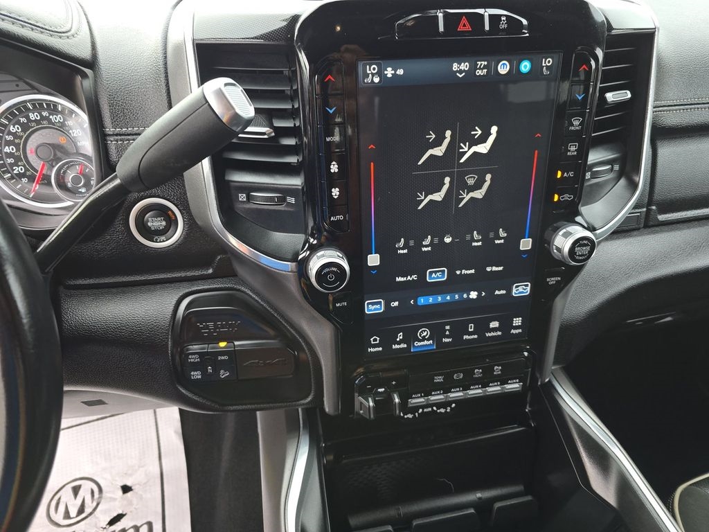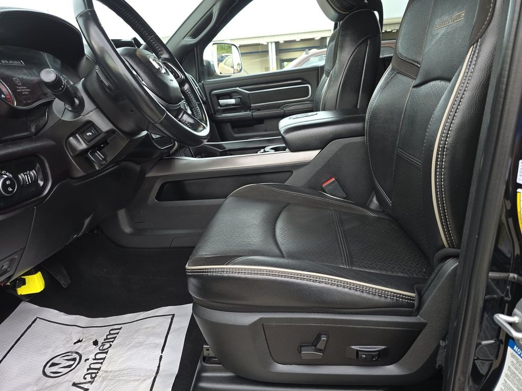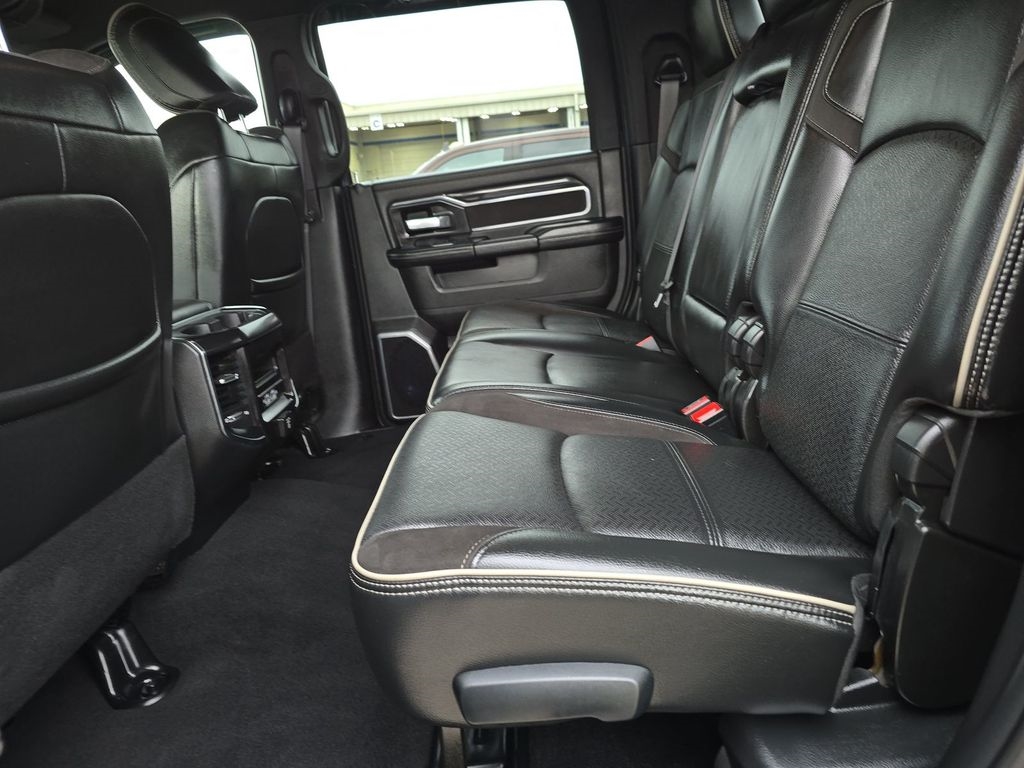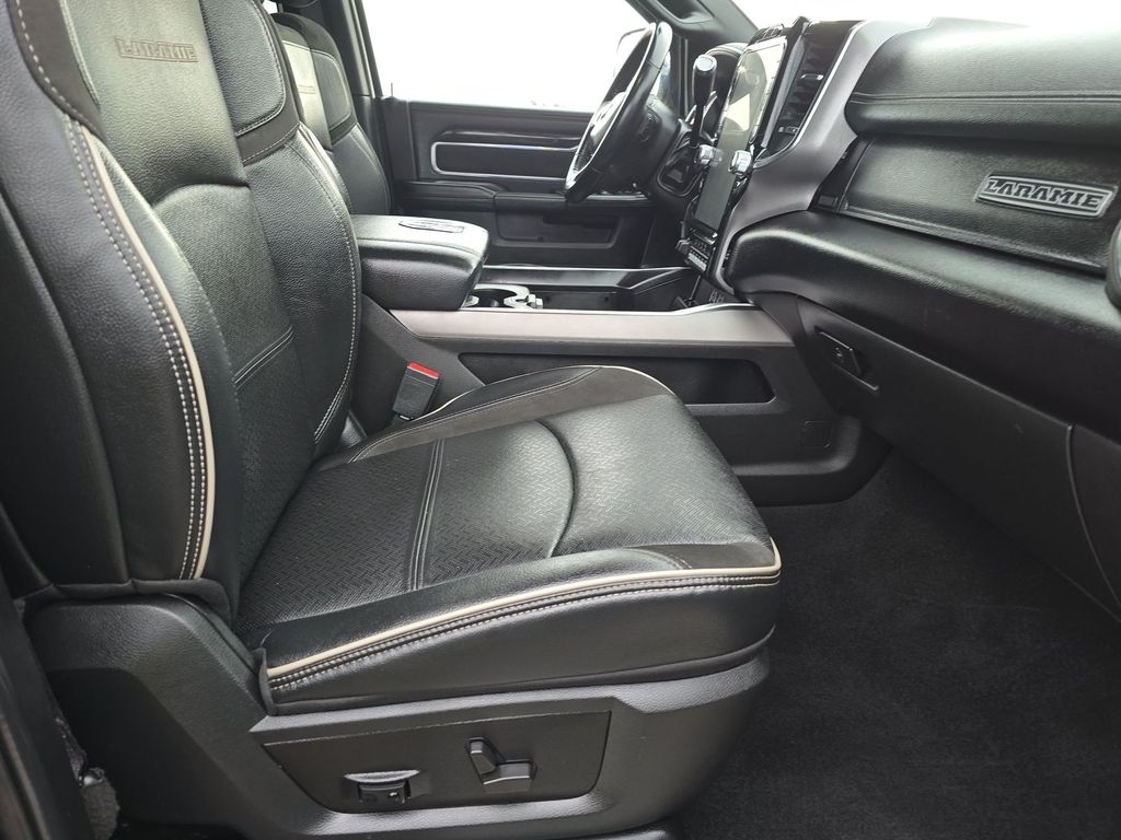 #1 Seat Foam Cushion, 115V Auxiliary Rear Power Outlet, 2 Way Rear Headrest Seat, 4 Way Front Headrests, Adjustable pedals, Anti-Spin Differential Rear Axle, Apple CarPlay, Apple CarPlay/Android Auto, Auto High Beam Headlamp Control, Automatic temperature control, Black Interior Accents, Body Color Door Handles, Body Color Grille Surround, Bucket Seats, Center Stop Lamp w/Cargo View Camera, Chrome Exterior Mirrors, Clearance Lamps, Dash Pass Thru Wire Circuits, Exterior Mirrors Courtesy Lamps, Exterior Mirrors w/Heating Element, Exterior Mirrors w/Memory, Exterior Mirrors w/Supplemental Signals, Foam Bottle Insert (Door Trim Panel), Front Center Armrest w/Storage, Front dual zone A/C, Front Performance Tuned Shock Absorbers, Front Seat Back Map Pockets, Full Length Upgraded Floor Console, Google Android Auto, Heated door mirrors, Heated Front Seats, Heated Steering Wheel, Heated steering wheel, High Back Seats, Hill Descent Control, I/P Mounted Auxiliary Switches, Integrated Voice Command w/Bluetooth, Laramie Level A Equipment Group, Leather Trimmed Bucket Seats, Low tire pressure warning, Mirror Running Lights, Mirror-Mounted Aux Reverse Lamps, Off Road Decal, Off Road Package, Painted Front Bumper, Painted Rear Bumper, ParkView Rear Back-Up Camera, Power 2-Way Driver Lumbar Adjust, Power 2-Way Passenger Lumbar Adjust, Power Adjust 8-Way Driver Seat, Power Adjust 8-Way Front Passenger Seat, Power Adjustable Convex Aux Mirrors, Power Adjustable Pedals w/Memory, Power-Folding Mirrors, Pwr Convenience Chrome Tow Mirrors w/Spotter & Memory, Quick Order Package 2HH Laramie, Radio/Driver Seat/Mirrors/Pedals Memory, Rain Sensitive Windshield Wipers, Rear 60/40 Folding Seat, Rear Performance Tuned Shock Absorbers, Rear window defroster, Remote keyless entry, Remote Tailgate Release, Snow Chief Group, Sport Appearance Package, Sport Decal, Steering wheel mounted audio controls, Surround View Camera System, Tow Hooks, Towing Technology Group B, Trailer Reverse Guidance, Trailer Tow Mirrors.