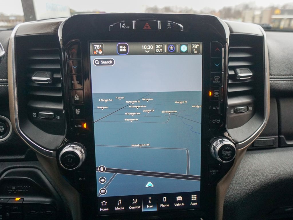 1 Owner, #1 Seat Foam Cushion, 10 Speakers, 115V Auxiliary Rear Power Outlet, 12" Touchscreen Display, 2 Way Rear Headrest Seat, 2nd Row In Floor Storage Bins, 4 Way Front Headrests, 4G LTE Wi-Fi Hot Spot, Active Noise Control System, Adaptive Cruise Control w/Stop, Adaptive Steering System, Alexa Built-In, All R1 High Radios, All Radio Equipped Vehicles, AM/FM radio: SiriusXM, Apple CarPlay, Auto High Beam Headlamp Control, Automatic temperature control, Body Color Bumper Group, Bucket Seats, Chrome Exterior Mirrors, Cold Weather Group, Connected Travel & Traffic Services, Connectivity - US/Canada, CTR Stop Lamp w/Cargo View Camera, Digital Rearview Mirror, Disassociated Touchscreen Display, Engine Block Heater, Exterior Mirrors Courtesy Lamps, Exterior Mirrors w/Heating Element, Exterior Mirrors w/Memory, Exterior Mirrors w/Supplemental Signals, Foam Bottle Insert (Door Trim Panel), Folding Flat Load Floor Storage, For Details, Visit DriveUconnect.com, For More Info, Call 800-643-2112, Front dual zone A/C, Front Seat Back Map Pockets, Full Length Upgraded Floor Console, Full Speed Forward Collision Warning Plus, Global Telematics Box Module (TBM), Google Android Auto, GPS Antenna Input, GPS Navigation, HD Radio, Heated Front Seats, Heated front seats, Heated Steering Wheel, High Back Seats, Integrated Voice Command w/Bluetooth, Lane Keep Assist, Laramie Level A Equipment Group, Leather Trimmed Bucket Seats, Low tire pressure warning, Mirror Running Lights, Mirror-Mounted Aux Reverse Lamps, MOPAR Winter Front Grille Cover, Off-Road Information Pages, Painted Front Bumper, Painted Rear Bumper, ParkView Rear Back-Up Camera, Power 2-Way Driver Lumbar Adjust, Power 2-Way Passenger Lumbar Adjust, Power Adjust 8-Way Driver Seat, Power Adjust 8-Way Front Passenger Seat, Power Adjustable Convex Aux Mirrors, Power Adjustable Pedals w/Memory, Power Chrome Tow Mirrors w/Convex Spotter & Memory, Power Folding Mirrors, Quick Order Package 2HH Laramie, Radio: Uconnect 5 Nav w/12.0" Display, Radio/Driver Seat/Mirrors/Pedals Memory, Rain Sensitive Windshield Wipers, Rear 60/40 Folding Seat, Rear window defroster, Remote keyless entry, Remote Tailgate Release, Safety Group B (DISC), Selectable Tire Fill Alert, SiriusXM Radio Service, SiriusXM w/360L, Steering wheel mounted audio controls, Surround View Camera System, Towing Technology Group B, Trailer Reverse Guidance, Trailer Tow Mirrors.