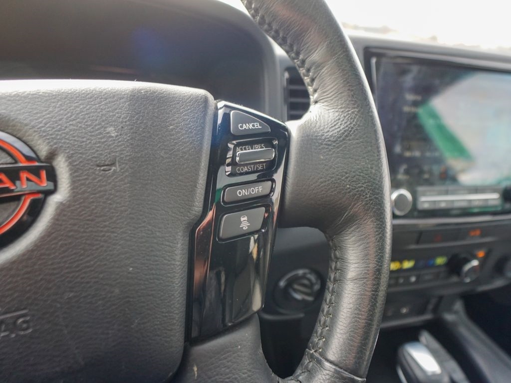 1 Owner, 4WD, 120V Power Outlet in Bed, 120V Power Outlet in Rear Center Console, 17" Accessory Dark Beadlock Style Alloy Wheels, 6 Speakers, All Lava Red Accent Stitching Delete, AM/FM radio: SiriusXM, Auto-Dimming Mirror, Auto-Tilt & Slide Sunroof w/Manual Shade, Automatic temperature control, Bed Under-Rail Lighting, Fender Premium Audio System w/10 Speakers, Front & Rear Leather Seat Trim (1st/2nd), Front Bucket Seats, Front Center Armrest, Front dual zone A/C, Heated Front Seats, Heated Outside Mirrors, Heated Steering Wheel, HomeLink UGDO, Intelligent Around View Monitor (I-AVM), Low tire pressure warning, Navigation system: Nissan Navigation with Voice Recognition, Off-Road Protection Package, Off-Road Style Step Rails, PRO-4X Comfort & Convenience Package, PRO-4X Premium Package, Radio: SXM/AM/FM/AUX/USB Audio System w/6 Speakers, Remote Engine Starter, Remote keyless entry, Spray-In Bedliner, Steering wheel mounted audio controls, Trailer Hitch w/Wiring Harness, Unique Premium Center Console Stitching, Unique Premium Door Trim, Utili-Track System, Wireless Charging For Personal Devices.