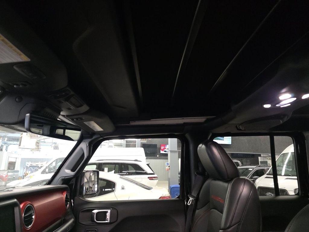 The exterior of this Wrangler Unlimited Rubicon exudes rugged sophistication in a sleek Black finish. The Xtreme Recon 35" tire package, steel bumpers, and Rubicon Highline flare provide a commanding presence that demands attention. Inside, the Black leather-trimmed bucket seats and premium door trim panels create a refined and comfortable cabin, while the advanced safety and technology features, including the Uconnect 4C Nav system, ensure a seamless and connected driving experience.